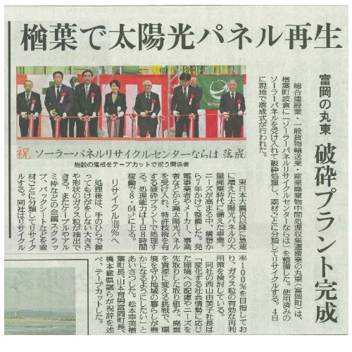 2025年11月6日このたび、弊社グループ会社・株式会社丸東 「ソーラーパネルリサイクルセンターならは」の落成式が2025年11月4日に行われ福島民友新聞社に掲載されました。